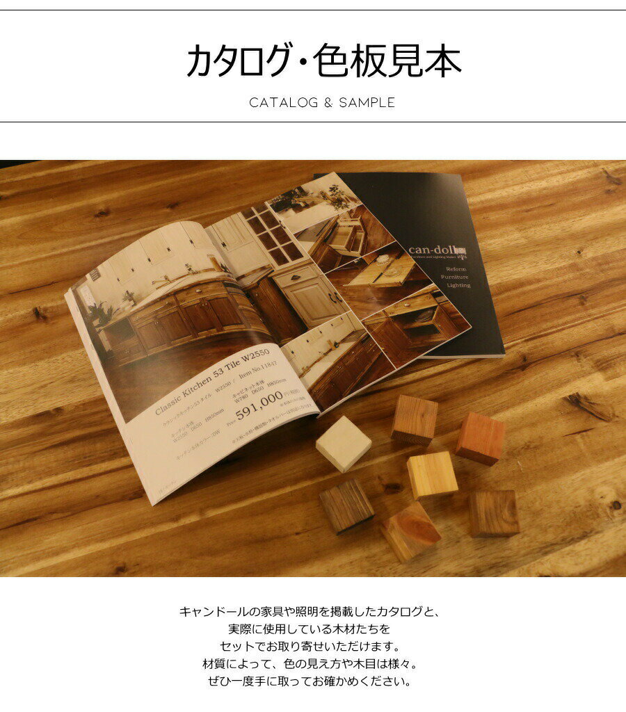 ■商品説明 キャンドールの家具や照明カタログ、 実際に使用している木材の板見本を セットでお取り寄せいただけます。